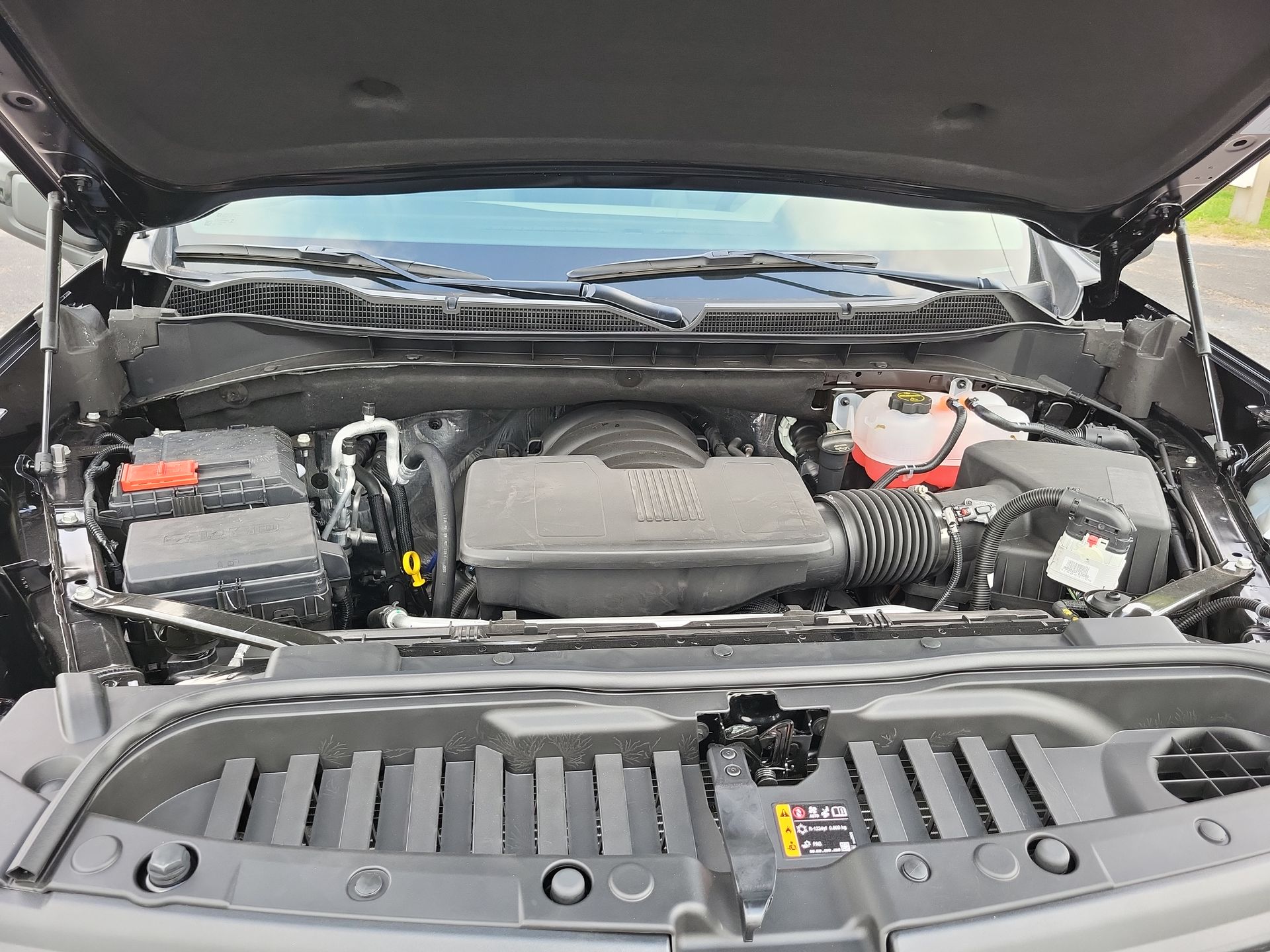 SEAT, UP-LEVEL REAR WITH STORAGE PACKAGE 60/40 folding bench for Crew Cab models, includes full-length bench seat, seatback storage on left and right side, center fold out armrest with 2 cupholders, full cab width under-seat storage, (includes child seat top tether anchor), PROTECTION PACKAGE includes (B1J) wheel house liners and (CGN) Chevytec spray-on bedliner, LEATHER PACKAGE Includes (SNR) Up-level Rear Seat with Storage Package., DARK APPEARANCE PACKAGE includes Black badging/decals and exhaust tips. When equipped with (L3B) TurboMax engine includes (NB5) Single Exhaust and (VTA) Black Chrome exhaust tip, LPO. When equipped with (L84) or (LZ0) engine includes (N10) Dual Exhaust with Black tips. Includes (V76) Black Tow Hooks and (WPQ) Protection Package., CONVENIENCE PACKAGE II includes (UG1) Universal Home Remote, (A48) rear sliding power window, (PZ8) Hitch Guidance with Hitch View and (UET) Trailering App Includes (UQA) Bose Premium Sound System. , SHIFTER, ELECTRONIC TRANSMISSION RANGE SELECTOR includes steering column paddle shifters, SEATS, FRONT BUCKET with center console (Includes (EPH) Electronic Transmission Range Selector (console mounted)., RECOVERY HOOKS, FRONT, FRAME-MOUNTED, BLACK, REAR AXLE, 3.23 RATIO, LT TRAIL BOSS PREFERRED EQUIPMENT GROUP includes standard equipment, LPO, EXHAUST CALIBRATION, MORE AGGRESSIVE SPORT EXHAUST VALVE TUNING, LPO, BLACK TUBULAR ASSIST STEPS, 6" RECTANGULAR (dealer-installed), LICENSE PLATE KIT, FRONT, IN-VEHICLE TRAILERING APP, SYSTEM includes checklist, trailer maintenance reminders, trailer security alerts, trailer mileage, tow/haul reminder, trailer electrical diagnostics and Trailer Tire Pressure Monitor System module, HITCH GUIDANCE WITH HITCH VIEW, GVWR, 7100 LBS. (3221 KG), GIDEON/VERY DARK ATMOSPHERE, LEATHER-APPOINTED FRONT OUTBOARD SEATING POSITIONS, ENGINE, 6.2L ECOTEC3 V8 (420 hp [313 kW] @ 5600 rpm, 460 lb-ft of torque [624 Nm] @ 4100 rpm); featuring Dynamic Fuel Management that enables the engine to operate in 17 different patterns between 2 and 8 cylinders, depending on demand, to optimize power delivery and efficiency, COOLING, EXTERNAL ENGINE OIL COOLER, COOLING, AUXILIARY EXTERNAL TRANSMISSION OIL COOLER.