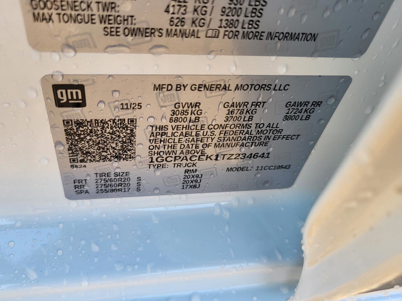 Window, power front, drivers express up/down, Wi-Fi Hotspot capable (Terms and limitations apply. See onstar.com or dealer for details.), Wheels, 17" x 8" (43.2 cm x 20.3 cm) Bright Silver painted aluminum, USB ports, rear, dual, charge-only, USB Ports, 2, Charge/Data ports located on instrument panel, Transmission, 8-speed automatic, electronically controlled with overdrive and tow/haul mode. Includes Cruise Grade Braking and Powertrain Grade Braking (Included and only available with (L3B) TurboMax engine. Requires (AZ3) front 40/20/40 split-bench seats.), Trailer brake controller, integrated, Tires, 255/70R17 all-season, blackwall, Tire, spare 255/70R17 all-season, blackwall (Included with (QBN) 255/70R17 all-season, blackwall tires.), Tire Pressure Monitoring System, auto learn includes Tire Fill Alert (does not apply to spare tire), Tire carrier lock, keyed cylinder lock that utilizes same key as ignition and door, Theft-deterrent system, unauthorized entry, Teen Driver a configurable feature that lets you activate customizable vehicle settings associated with a key fob, to help encourage safe driving behavior. It can limit certain available vehicle features, and it prevents certain safety systems from being turned off. An in-vehicle report card gives you information on driving habits and helps you to continue to coach your new driver, Taillamps with incandescent tail, stop and reverse lights, Tailgate, standard, Tailgate, gate function manual with EZ Lift includes power lock and release, Tailgate and bed rail protection cap, top, Steering, Electric Power Steering (EPS) assist, rack-and-pinion, Steering wheel, wrapped, Steering wheel audio controls.