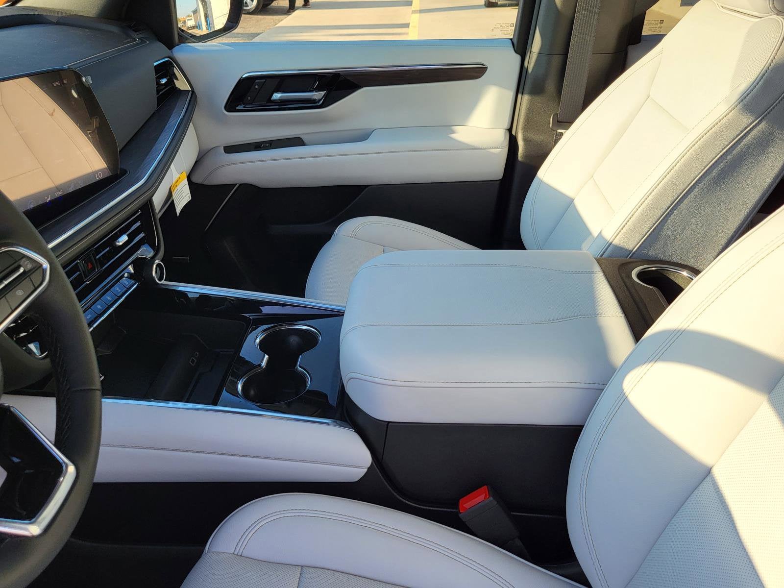 Window, power with driver Express-Up/Down, Wi-Fi Hotspot capable (Terms and limitations apply. See onstar.com or dealer for details.), Wheels, 20" x 9" (50.8 cm x 22.9 cm) polished aluminum, Wheel, full-size spare, 17" (43.2 cm) steel, Warning tones headlamp on, driver and right-front passenger seat belt unfasten and turn signal on, Visors, driver and front passenger illuminated vanity mirrors, sliding, USB ports, 2 type-C, charge-only, located in third row, USB ports, 2 type-A and C, charge and data, located on front console, Universal Home Remote includes garage door opener, programmable, Transmission, 10-speed automatic electronically controlled with overdrive, includes Traction Select System including tow/haul (Standard with (L84) 5.3L EcoTec3 V8 engine or (L87) 6.2L EcoTec3 V8 engine only.), Trailering equipment includes trailering hitch platform, 7-wire harness with independent fused trailering circuits mated to a 7-way connector and 2" trailering receiver, Trailer sway control, Tires, 275/60R20SL all-season, blackwall, Tire, spare P265/70R17 all-season, blackwall, Tire Pressure Monitoring System auto learn, includes Tire Fill Alert (does not apply to spare tire), Tire carrier, lockable outside spare, winch-type mounted under frame at rear, Theft-deterrent system, electrical, unauthorized entry, Teen Driver a configurable feature that lets you activate customizable vehicle settings associated with a key fob, to help encourage safe driving behavior. It can limit certain available vehicle features, and it prevents certain safety systems from being turned off. An in-vehicle report card gives you information on driving habits and helps you to continue to coach your new driver, Tail lamps, LED, includes animated lighting, Suspension, rear multi-link with coil springs.