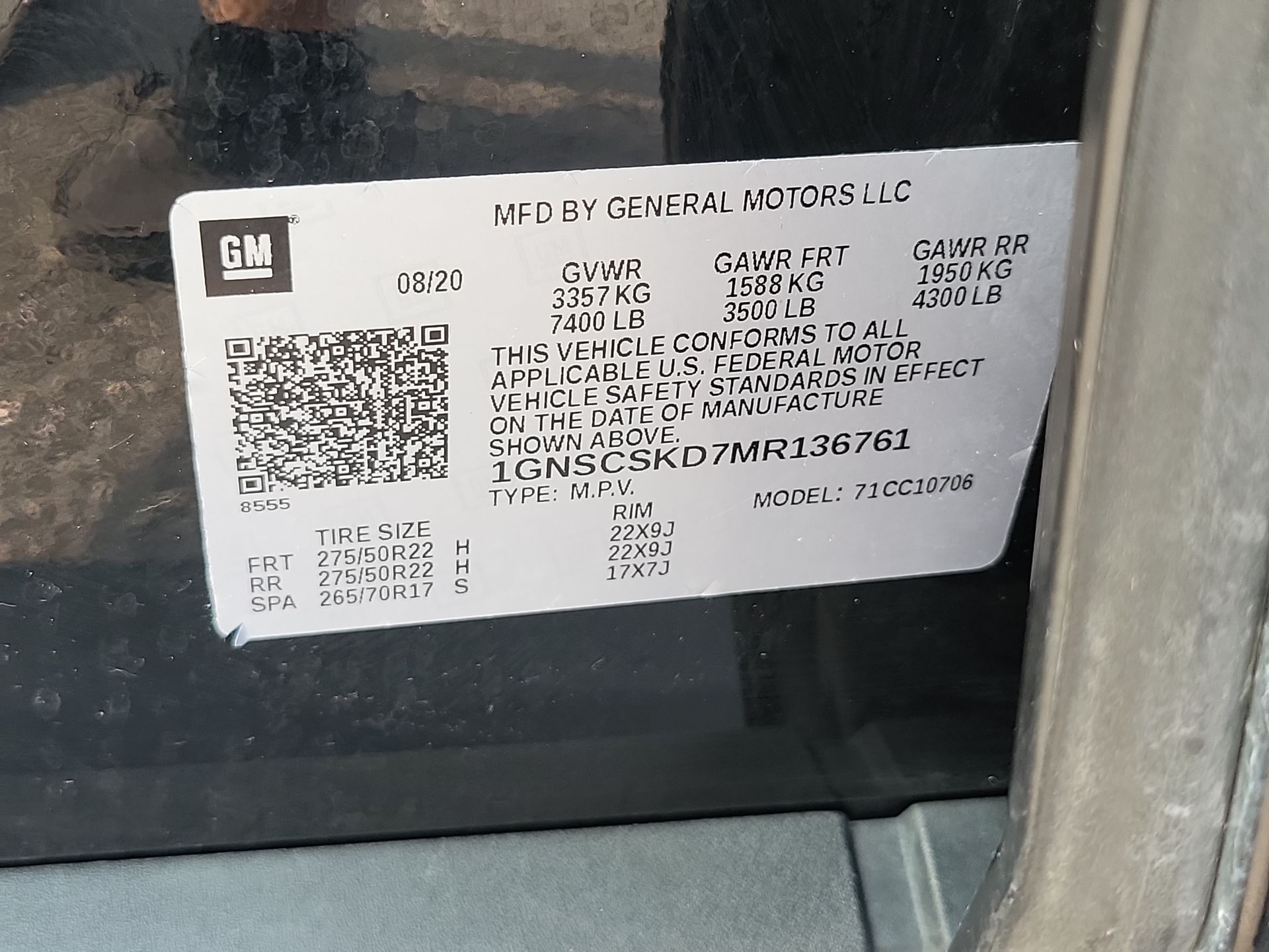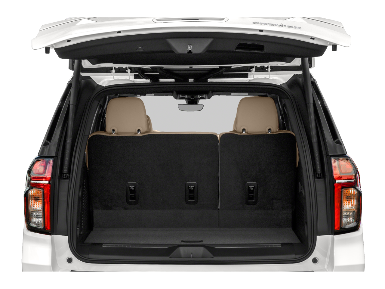 PREMIUM PACKAGE includes (NHT) Max Trailering Package, (C3U) Panoramic power sunroof and (KSG) Adaptive Cruise Control (Also includes (Y74) Enhanced Display and Alert Package., MAX TRAILERING PACKAGE includes (ZL6) Advanced Trailering Package and (V03) extra capacity cooling system, LICENSE PLATE FRONT MOUNTING PACKAGE, ENHANCED DISPLAY AND ALERT PACKAGE includes (UV2) HD Surround Vision, (UV6) Head-Up Display, (DRZ) Rear Camera Mirror, (CWA) Rear Camera Mirror Washer and (UKK) Rear Pedestrian Alert, ADVANCED TRAILERING PACKAGE includes (PZ8) Hitch Guidance with Hitch View, (JL1) trailer brake controller and (U1D) Advanced Trailering System Also includes (UKV) Extended Side Blind Zone Alert.) , REAR AXLE, 3.23 RATIO, PREMIER PREFERRED EQUIPMENT GROUP Includes Standard Equipment, LPO, WHEEL LOCKS, SET OF 4 (dealer-installed), LPO, BLACK BOWTIE EMBLEMS, FRONT AND REAR (dealer-installed), JET BLACK, PERFORATED LEATHER SEATING SURFACES 1ST AND 2ND ROW, HITCH GUIDANCE WITH HITCH VIEW with image adjustment, Pan/Zoom, HEAD-UP DISPLAY, 15" DIAGONAL MULTI-COLOR, HD SURROUND VISION, GVWR, 7400 LBS. (3357 KG) (STD), ENHANCED AUTOMATIC EMERGENCY BRAKING, ENGINE, 5.3L ECOTEC3 V8 with Dynamic Fuel Management, Direct Injection and Variable Valve Timing, includes aluminum block construction (355 hp [265 kW] @ 5600 rpm, 383 lb-ft of torque [518 Nm] @ 4100 rpm) (STD), COOLING SYSTEM, EXTRA CAPACITY, BUILDABLE ORDER CONFIRMATION, BLACK, AUDIO SYSTEM, CHEVROLET INFOTAINMENT 3 PREMIUM SYSTEM WITH CONNECTED NAVIGATION, 10.2" DIAGONAL HD COLOR TOUCHSCREEN AM/FM stereo, Bluetooth® audio streaming for 2 active devices, Apple CarPlay and Android Auto capable, enhanced voice recognition, additional memory for in-vehicle apps, cloud connected personalization for select infotainment and vehicle settings. Subscription required for enhanced and connected services after trial period. (STD).