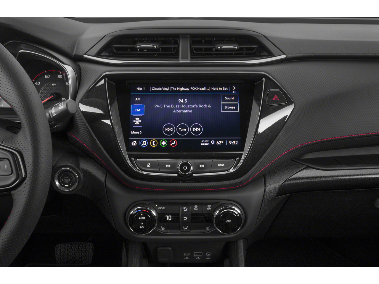 CONVENIENCE PACKAGE includes (C68) automatic climate control air conditioning, (UIJ) 8" diagonal color touchscreen display, (USS) one type-A and one type-C charging only USB ports, (KI6) 120-volt power outlet, (DD8) inside rearview auto-dimming mirror and (DMS) driver and front passenger illuminated vanity mirrors, covered, sliding visors, CONFIDENCE II PACKAGE includes (UD7) Rear Park Assist Vehicles built prior to January 10, 2022 include Rear Park Assist. Certain vehicles built on or after January 10, 2022, will be forced to include (00Y) Not Equipped with Rear Park Assist, which removes Rear Park Assist. See dealer for details or the window label for the features on a specific vehicle.), AUDIO SYSTEM, CHEVROLET INFOTAINMENT 3 SYSTEM 7" diagonal color touchscreen, AM/FM stereo. Additional features for compatible phones include: Bluetooth® audio streaming for 2 active devices, voice command pass-through to phone, Apple CarPlay and Android Auto capable. (8" screen when (ZL3) Convenience Package and (ZL5) Driver Confidence Package or (SOR) Confidence II Package are ordered.) (STD) , MIRROR, INSIDE REARVIEW AUTO-DIMMING, LIFTGATE, POWER PROGRAMMABLE, HANDS FREE WITH LED LOGO PROJECTION, LICENSE PLATE BRACKET, FRONT, JET BLACK WITH RED ACCENTS, CLOTH WITH LEATHERETTE SEAT TRIM, ENGINE, ECOTEC 1.3L I3 TURBO DOHC SIDI WITH VARIABLE VALVE TIMING (VVT) (155 hp [115 kW] @ 5600 rpm, 174 lb-ft torque [236 N-m] @ 1600 rpm) (STD), DISPLAY, 8" DIAGONAL COLOR TOUCHSCREEN, CRIMSON METALLIC, AXLE, 5.45 FINAL DRIVE RATIO, AIR CONDITIONING, SINGLE-ZONE AUTOMATIC CLIMATE CONTROL includes (ASV) cabin humidity sensor, Wireless Apple CarPlay/Wireless Android Auto, Wiper, rear intermittent, Windshield, solar absorbing, Windows, power with driver express-up/down and front passenger and rear express-down, Wi-Fi Hotspot capable (Terms and limitations apply. See onstar.com or dealer for details.), Wheels, 18" (45.7 cm) High Gloss Black machined aluminum, Wheel, spare, 16" (40.6 cm) steel, Visors, driver and front passenger vanity mirrors, covered, sliding.