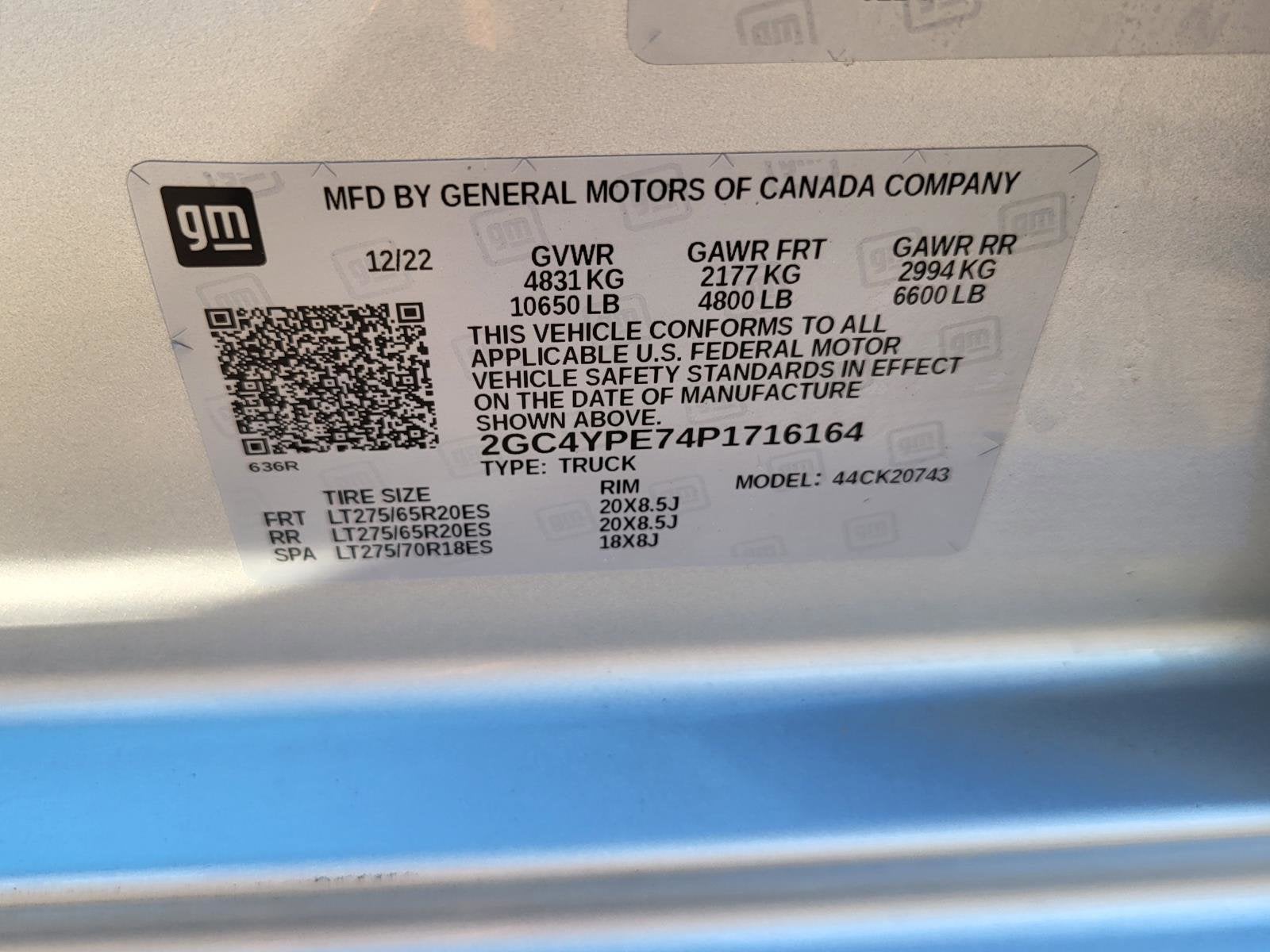 LTZ CONVENIENCE PACKAGE includes (A50) bucket seats with (D07) center console, (KQV) heated and ventilated front seats, (A48) rear sliding power window, (UG1) Universal Home Remote, (QT6) power up/down tailgate, (UF2) bed LED cargo area lighting and (KA6) rear heated seats , SEATS, HEATED SECOND ROW OUTBOARD SEATS, SEATS, FRONT BUCKET with center console, for Crew Cab and Double Cab models, REAR AXLE, 3.73 RATIO, LTZ PREFERRED EQUIPMENT GROUP includes standard equipment, LICENSE PLATE KIT, FRONT, LED CARGO AREA LIGHTING located in pickup bed, activated with switch on center switch bank or key fob, HILL DESCENT CONTROL, GVWR, 10,650 LBS. (4831 KG) (STD), GIDEON/VERY DARK ATMOSPHERE, PERFORATED LEATHER-APPOINTED FRONT OUTBOARD SEAT TRIM, ENGINE, 6.6L V8 with Direct Injection and Variable Valve Timing, gasoline, (401 hp [299 kW] @ 5200 rpm, 464 lb-ft of torque [629 N-m] @ 4000 rpm) (STD), CENTER CONSOLE, FLOOR-MOUNTED with cup holders, cell phone storage, power cord management, hanging file folder capability, ASSIST STEPS, CHROMED TUBULAR, 6" RECTANGULAR (factory installed), Wireless Phone Projection for Apple Carplay and Android Auto, Windows, power rear, express down, Window, power front, passenger express up/down, Window, power front, drivers express up/down, Wi-Fi Hotspot capable (Terms and limitations apply. See onstar.com or dealer for details.), Wheels, 18" (45.7 cm) machined aluminum with Silver painted accents, 6-spoke, Wheelhouse liners, rear.