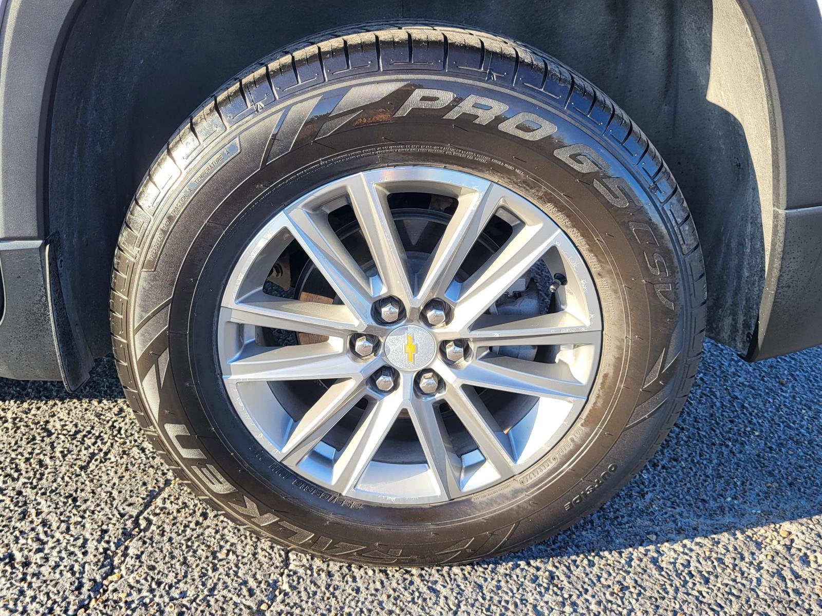 AUDIO SYSTEM, CHEVROLET INFOTAINMENT 3 PLUS SYSTEM 8" diagonal HD color touchscreen, AM/FM stereo, Bluetooth® audio streaming for 2 active devices, Apple CarPlay and Android Auto capable, voice recognition, in-vehicle apps, cloud connected personalization for select infotainment and vehicle settings. Subscription required for enhanced and connected services after trial period (STD), Wireless Phone Charging, Wireless Apple CarPlay/Wireless Android Auto, Wipers, front intermittent with washers, Wiper, rear intermittent with washer, Windows, power with driver Express Up/Down and front passenger Express-Down, Wi-Fi Hotspot capable (Terms and limitations apply. See onstar.com or dealer for details.), Wheels, 18-inch (45.7 cm) Bright Silver-painted aluminum, Wheel, spare, 18" (45.7 cm) steel, Visors, driver and passenger illuminated vanity mirrors, covered, Vehicle health management, USB ports 2 first row, 2 second row, 2 third row, Universal Home Remote includes garage door opener, programmable, Umbrella holders, driver and front passenger doors, Transmission, 9-speed automatic, Tool kit, road emergency, Tires, P255/65R18 all-season blackwall, Tire, compact spare, T135/70R18, blackwall, Tire Pressure Monitor, includes Tire Fill Alert (Does not monitor spare.), Theft-deterrent system, electrical, unauthorized entry.