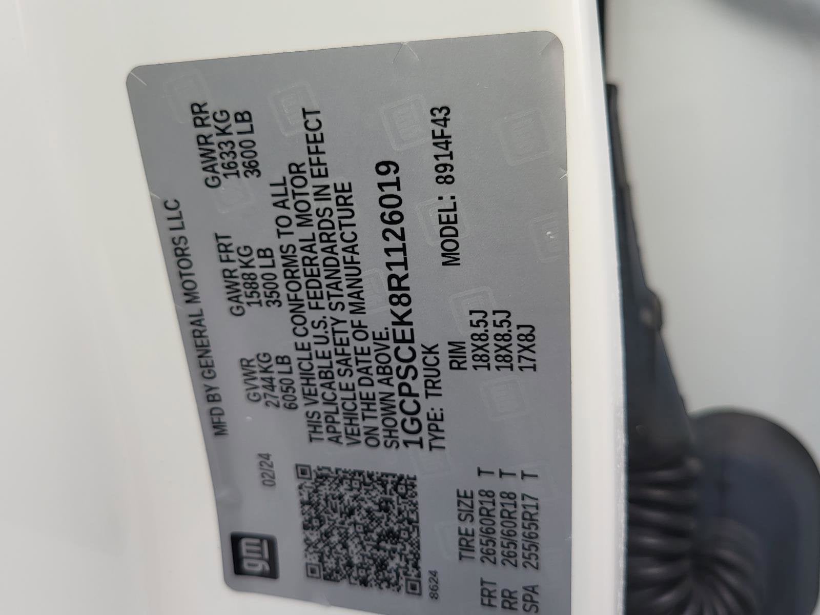 LT CONVENIENCE PACKAGE includes (N37) Tilt and Telescoping steering column, (CJ2) Dual-zone automatic climate control, (K34) Cruise Control, (DEG) Illuminated visor vanity mirrors, (A28) Sliding rear window, (C49) Rear defogger, (PPA) EZ lift and lower tailgate, (BPC) StowFlex Tailgate, (BDR) Locking Cylinder and (T40) LED Fog Lamp , STEERING WHEEL, HEATED, STEERING COLUMN, TILT AND TELESCOPING, SEATS, HEATED DRIVER AND FRONT PASSENGER, SEATS, FRONT BUCKET (STD), SEAT ADJUSTER, POWER DRIVER LUMBAR CONTROL, SEAT ADJUSTER, DRIVER 8-WAY POWER, REMOTE VEHICLE STARTER SYSTEM, REAR PARK ASSIST, REAR CROSS TRAFFIC BRAKING, REAR AXLE, 3.42 RATIO, MIRRORS, OUTSIDE HEATED POWER-ADJUSTABLE, MIRROR, INSIDE REARVIEW AUTO-DIMMING, MAP POCKET, DRIVER SEATBACK, LT PREFERRED EQUIPMENT GROUP includes standard equipment, LOCKING CYLINDER TAILGATE, KEYED CYLINDER LOCK, LICENSE PLATE KIT, FRONT (will be shipped to orders with ship-to states that require front license plate), HEADLAMPS, LED, GVWR, 6049 LBS. (2744 KG), FOG LAMPS, FRONT LED.