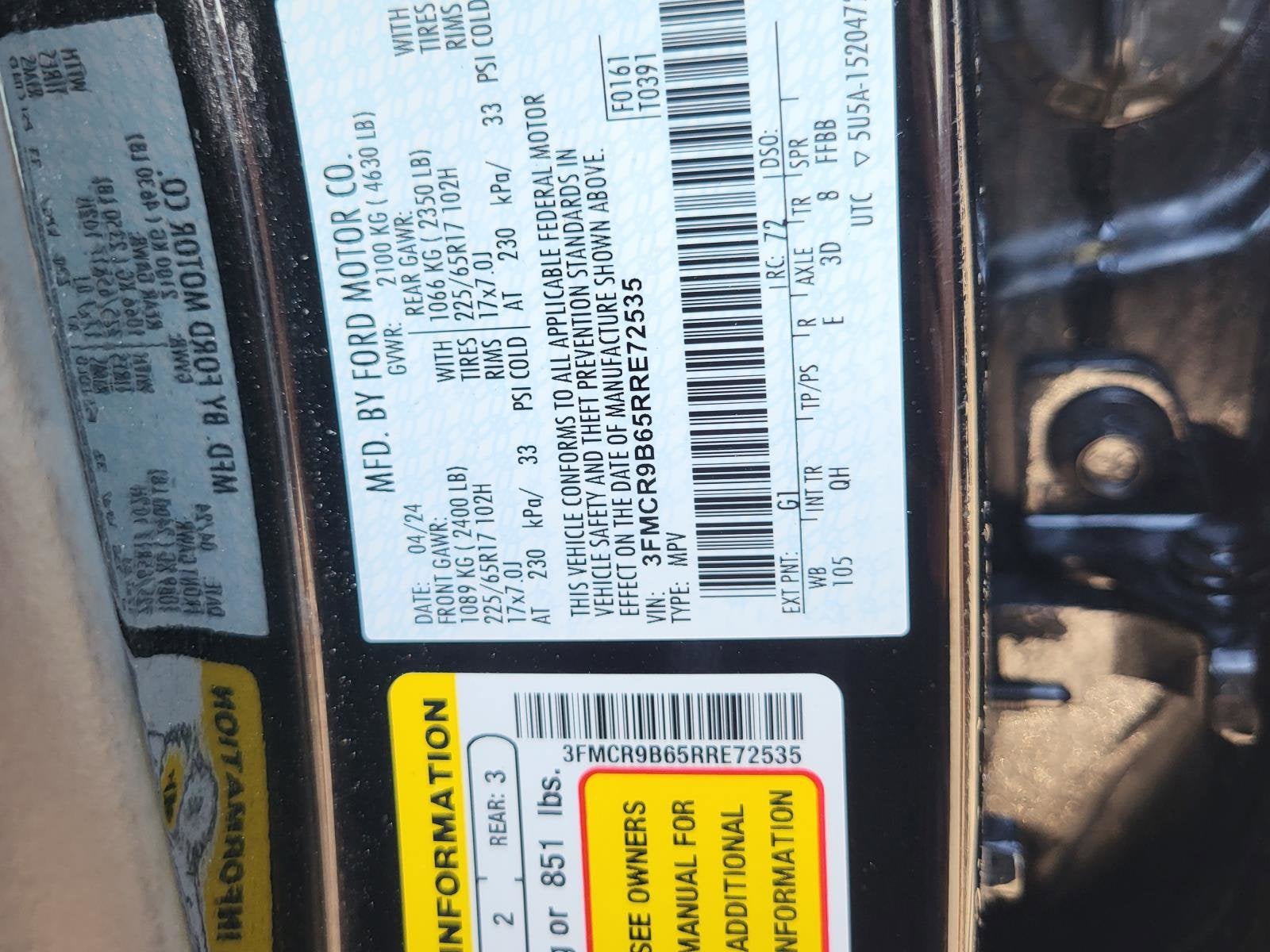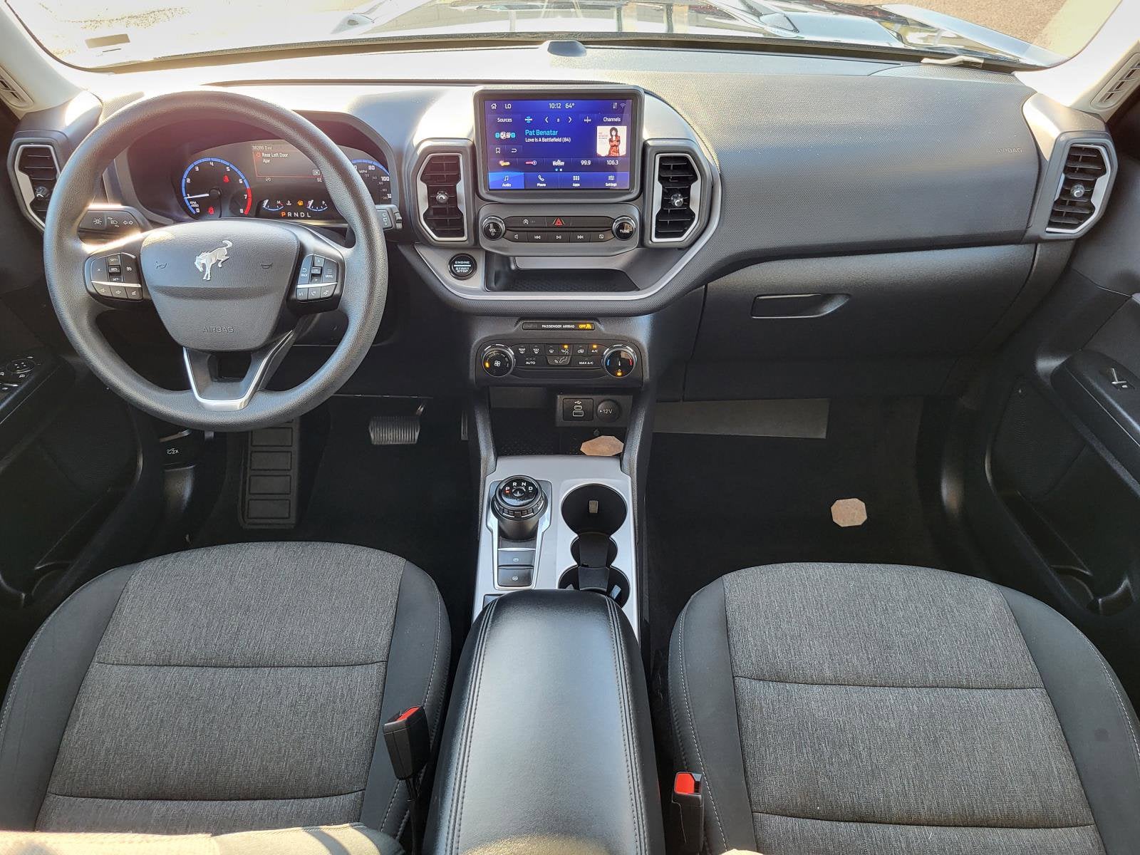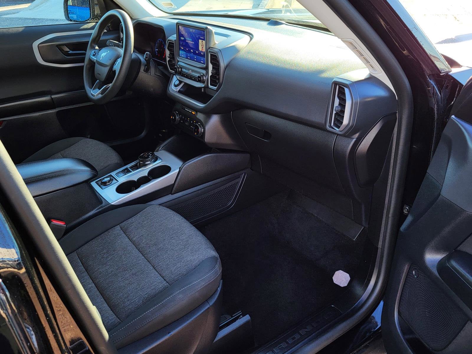 ENGINE: 1.5L ECOBOOST -inc: auto start-stop technology (STD), Wheels: 17" Carbonized Gray-Painted Aluminum -inc: High gloss, Voice Activated Automatic Air Conditioning, Vinyl/Rubber Floor Trim, Unique Cloth Front Bucket Seats -inc: easy to clean cloth, 6-way manual driver (fore/aft, up/down, recline) and 4-way manual passenger (fore/aft w/manual recline) seats, Trip Computer, Transmission: 8-Speed Automatic, Transmission w/Driver Selectable Mode, Tires: 225/65R17 102H All Season BSW, Tire Specific Low Tire Pressure Warning. This Ford Bronco Sport has a powerful Intercooled Turbo Regular Unleaded I-3 1.5 L/91 engine powering this Automatic transmission.